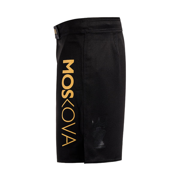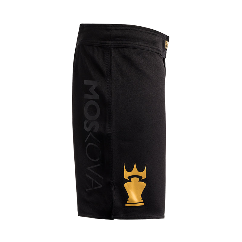 Stretch training shorts, 96% polyester / 4% spandex, flat velcro closure belt, Moskova print on the left leg and crown logo on the right leg.