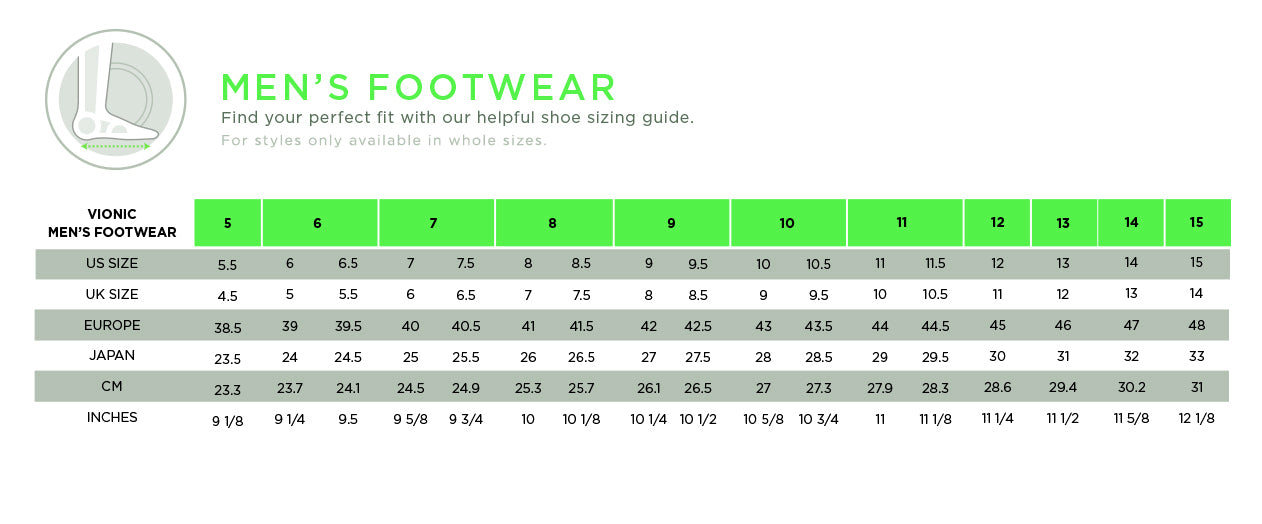 Dynamic sole – Patent pending Vionic sole design promotes happy , healthy feet.